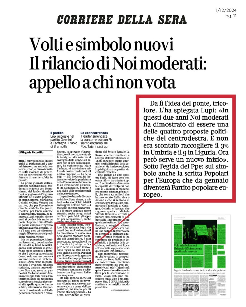 Il lavoro non รจ stato solo estetico, ma strategico: il nuovo simbolo รจ stato pensato per rappresentare visivamente il posizionamento politico del progetto. Il ponte stilizzato, nei colori del tricolore, diventa un elemento narrativo: mediazione, equilibrio, visione di centro.